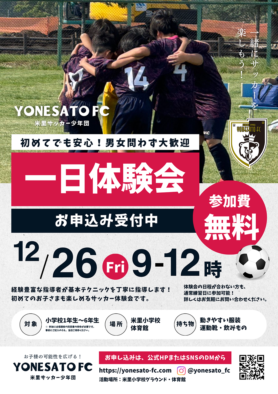 米里サッカー少年団では、下記の日程で一日体験会を実施します。